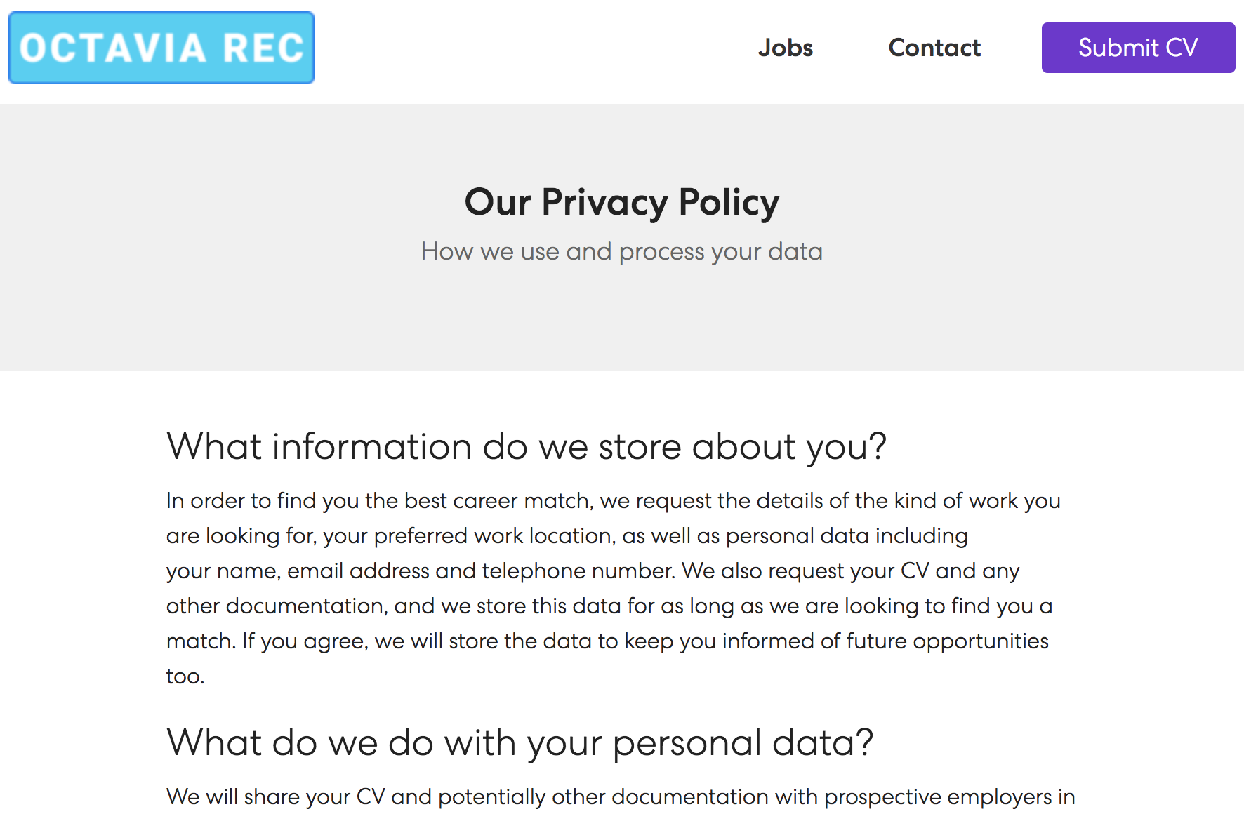 If you would like your terms of service and/or privacy policy to be publicly accessible to candidates, you can use the Octavia CRM portal to host them. Alternatively you can set a link to an externally hosted terms page (see below).