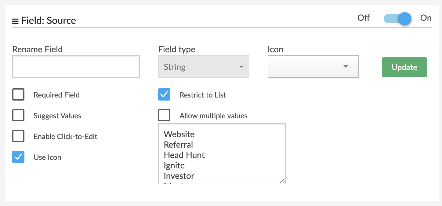 To customise your account go to the Settings and Customisation screen. Among other things the Customisation screen allows for customisation of the fields shown on the input and view screens of all Candidates, Roles, Clients and Hiring Managers.
